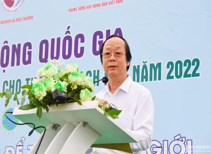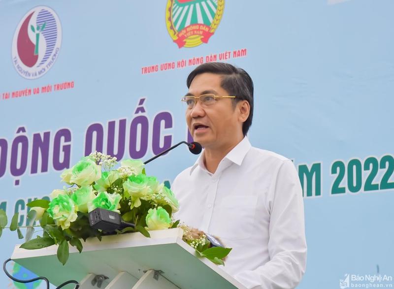Phát biểu hưởng ứng tại buổi lễ, đồng chí Hoàng Nghĩa Hiếu – Phó Bí thư Tỉnh ủy, Phó Chủ tịch UBND tỉnh Nghệ An đánh giá cao và hưởng ứng tích cực những hoạt động hết sức ý nghĩa, thiết thực do Bộ Tài nguyên và Môi trường phối hợp với Trung ương Hội Nông dân Việt Nam phát động thực hiện Chiến dịch "Làm cho thế giới sạch hơn" năm 2022.