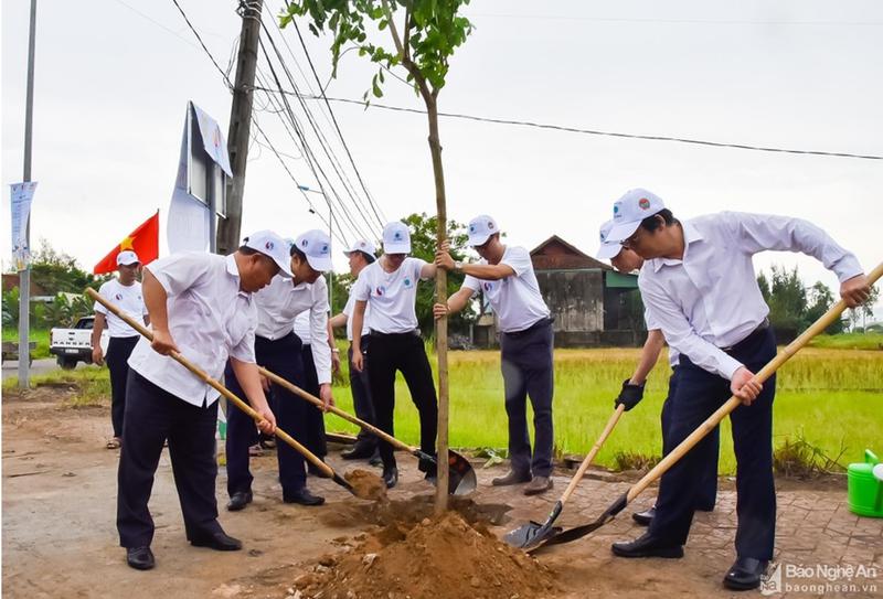 Nông dân huyện Diễn Châu tham gia trồng cây hưởng ứng chương trình. (Ảnh: Thanh Lê)