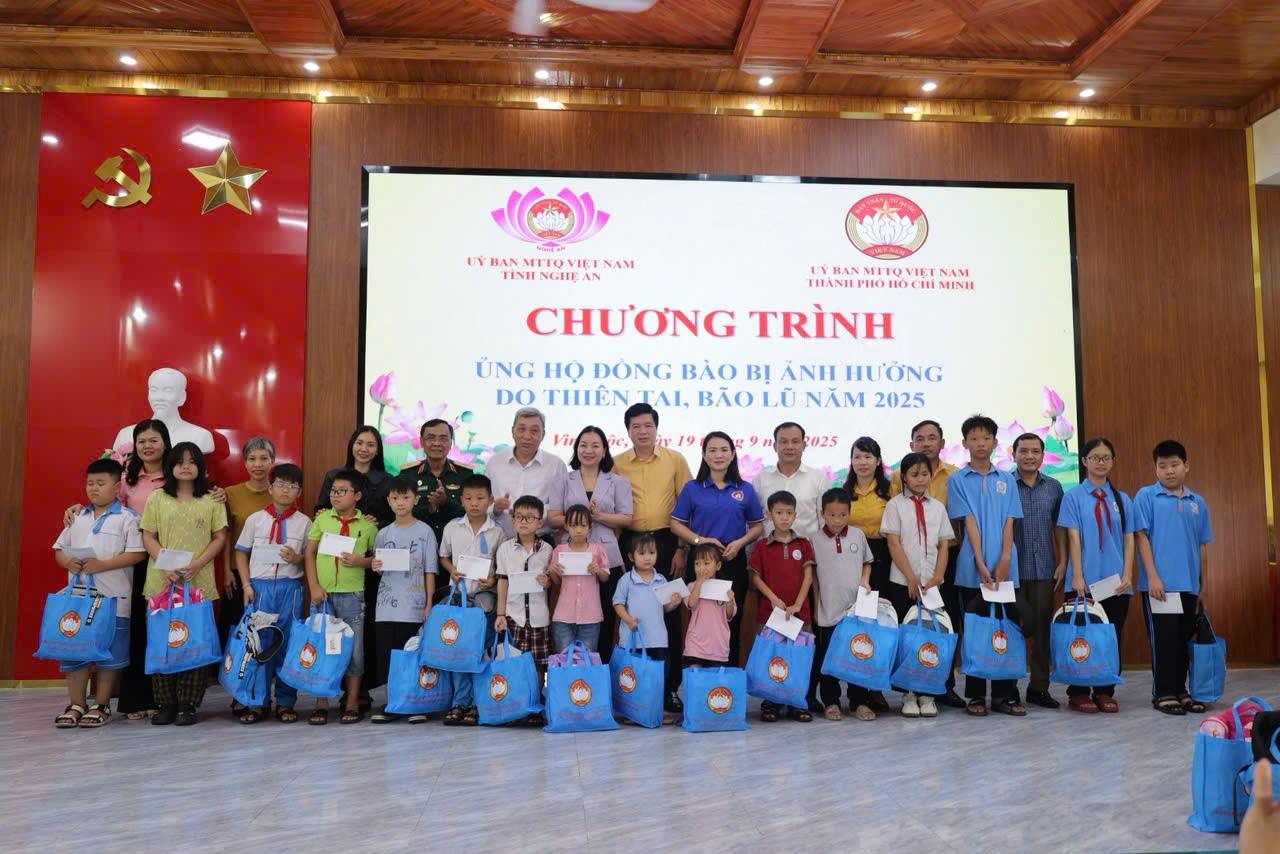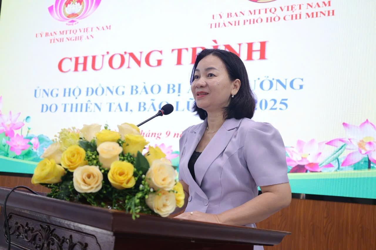 Thay mặt lãnh đạo MTTQVN tỉnh Nghệ An, đồng chí Nguyễn Đình Hùng đã bày tỏ lời cảm ơn sâu sắc đến tình cảm và sự hỗ trợ kịp thời của Đảng bộ và nhân dân TP. Hồ Chí Minh, cũng như các doanh nghiệp của thành phố Hồ Chí Minh. Đồng chí cho biết, hai cơn bão liên tiếp đã gây ra những thiệt hại rất lớn cho tỉnh với tổng thiệt hại hơn 5.000 tỷ đồng, và sự hỗ trợ này là nguồn động viên vô cùng quý giá, giúp người dân sớm ổn định lại cuộc sống.