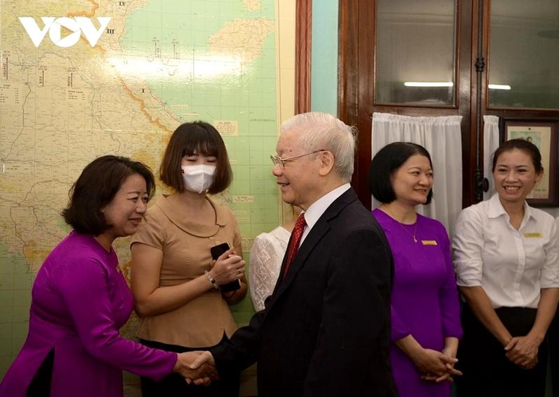 Tổng Bí thư Nguyễn Phú Trọng gặp gỡ cán bộ nhân viên Khu Di tích.