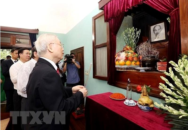 Trong không khí trang nghiêm và xúc động, Tổng Bí thư Nguyễn Phú Trọng đã thắp nén hương, thành kính tưởng nhớ và biết ơn Chủ tịch Hồ Chí Minh, lãnh tụ kính yêu của nhân dân Việt Nam, người đã để lại kho tàng vô giá, những bài học quý báu về tư tưởng, đạo đức, phong cách, lối sống cho các thế hệ hôm nay và mai sau học tập, noi theo.
